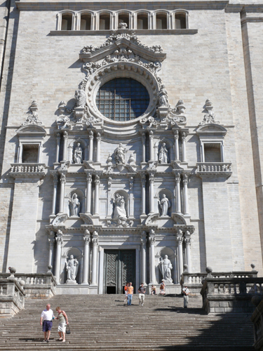 Die Kathedrale von Girona reizt schon allein wegen der Treppe mit ihren 90 Stufen. Die Fassade mit der Treppe wurde im 18. Jahrhundert (Barock) fertiggestellt.